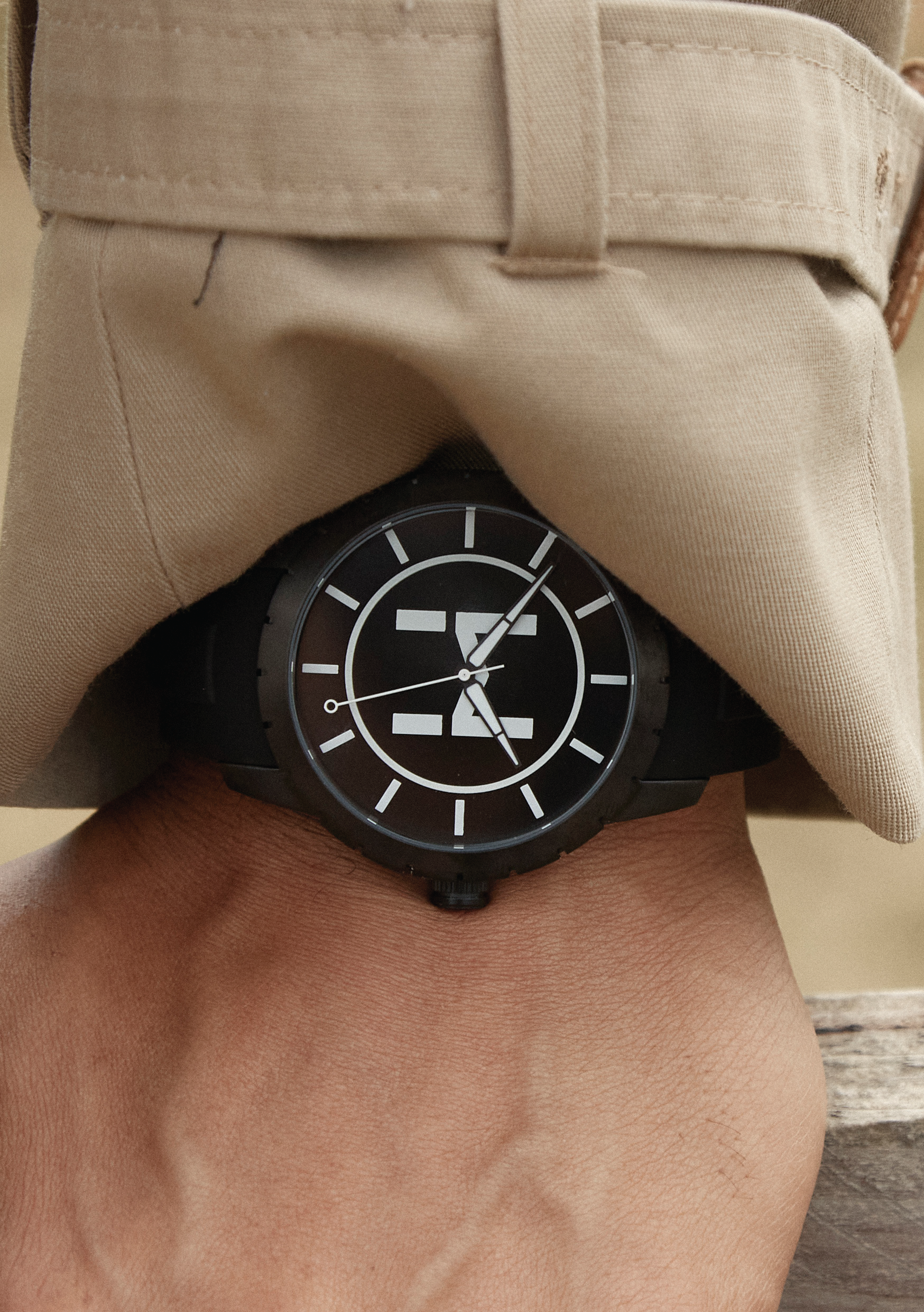 Daring, strong, unique and essential. Welcome to the new era of timeless. Welcome to the Original 36. Designed for the journey, this watch is waterproof to 100m and features a Quartz movement, brushed black stainless steel case and structured black rubber strap.