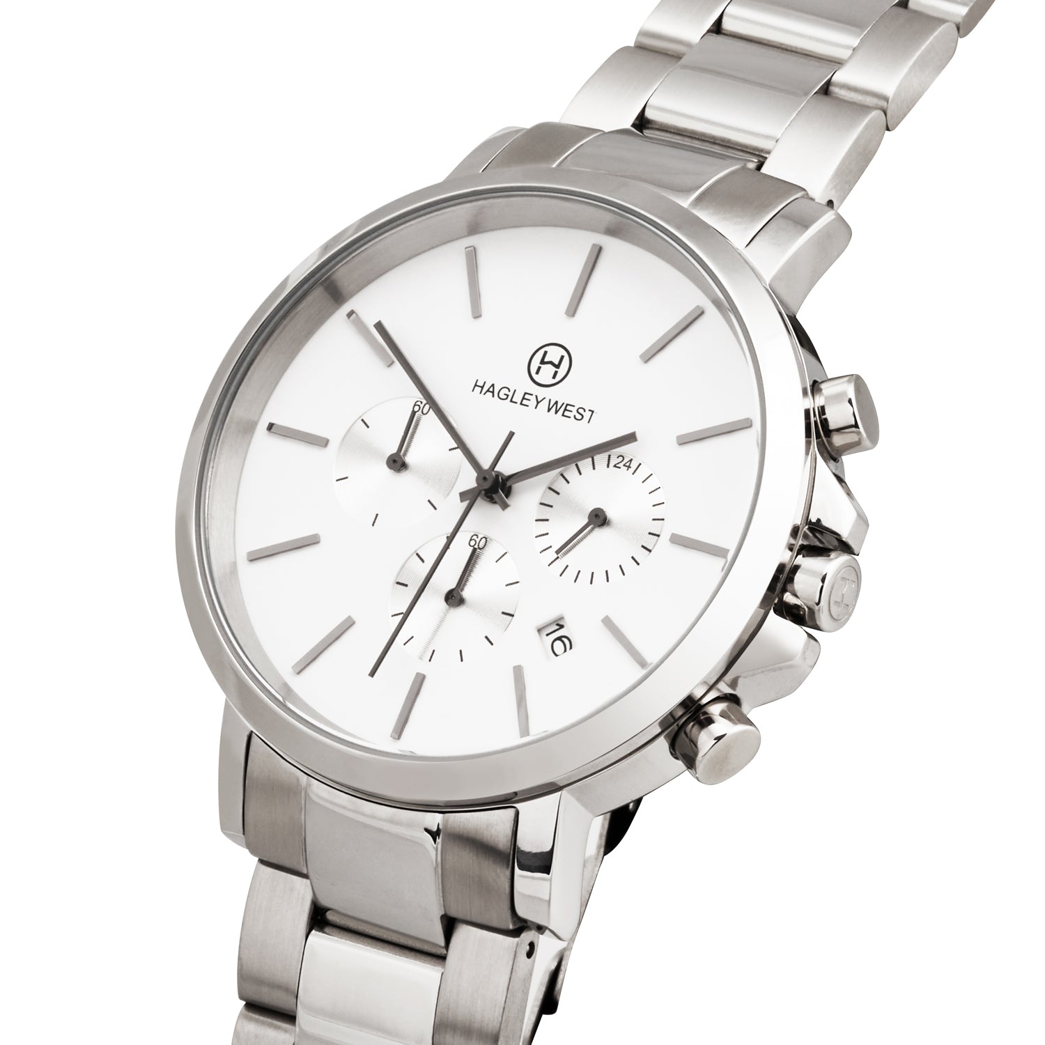 Hagley West offers two-year warranty covering manufacturer defects from the original purchase date from authorized dealers. This warranty excludes coverage for user damage, water exposure, normal wear, battery issues, glass damage, scratches, strap wear, and theft. Warranty claims require proof of purchase.