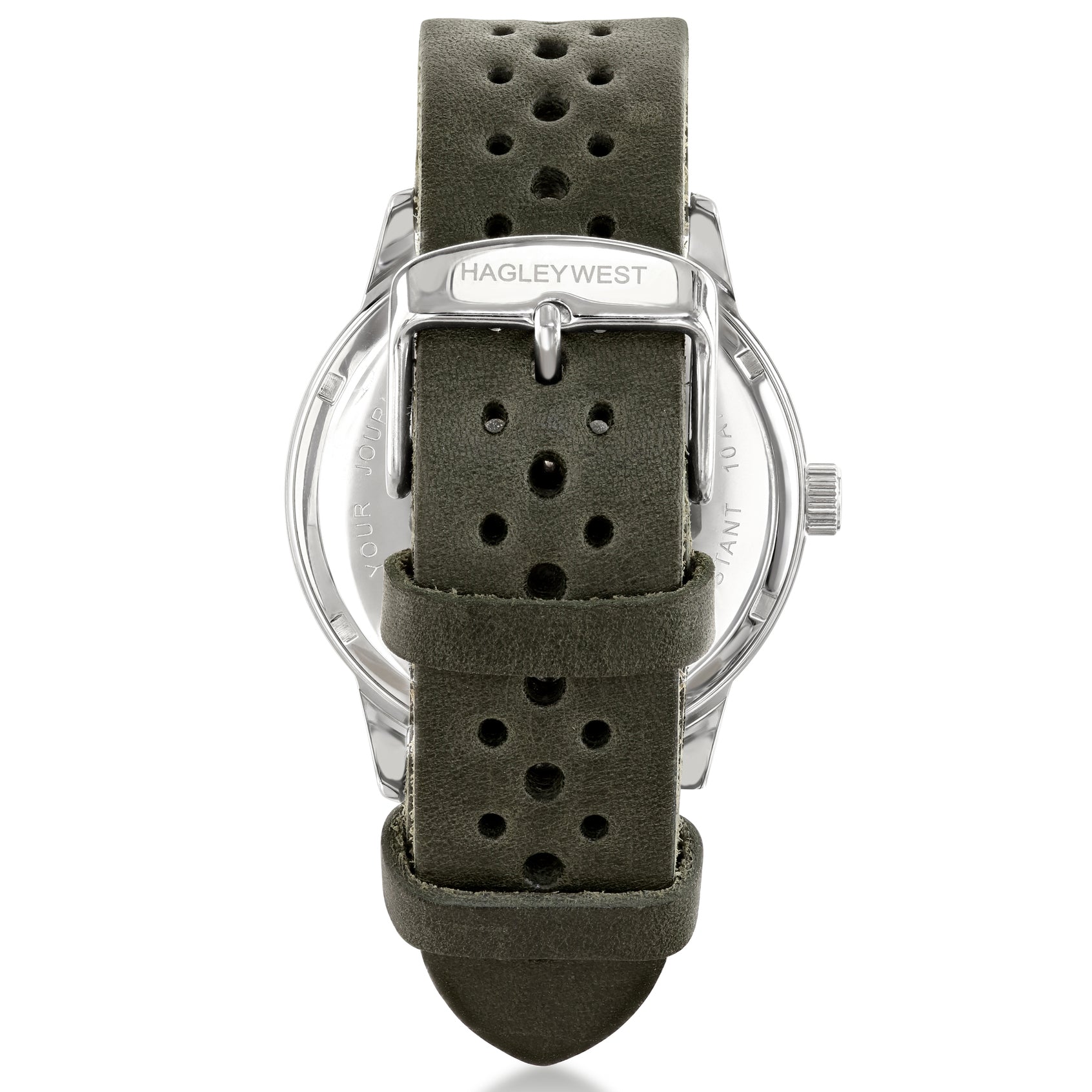 Hagley West offers two-year warranty covering manufacturer defects from the original purchase date from authorized dealers. This warranty excludes coverage for user damage, water exposure, normal wear, battery issues, glass damage, scratches, strap wear, and theft. Warranty claims require proof of purchase.