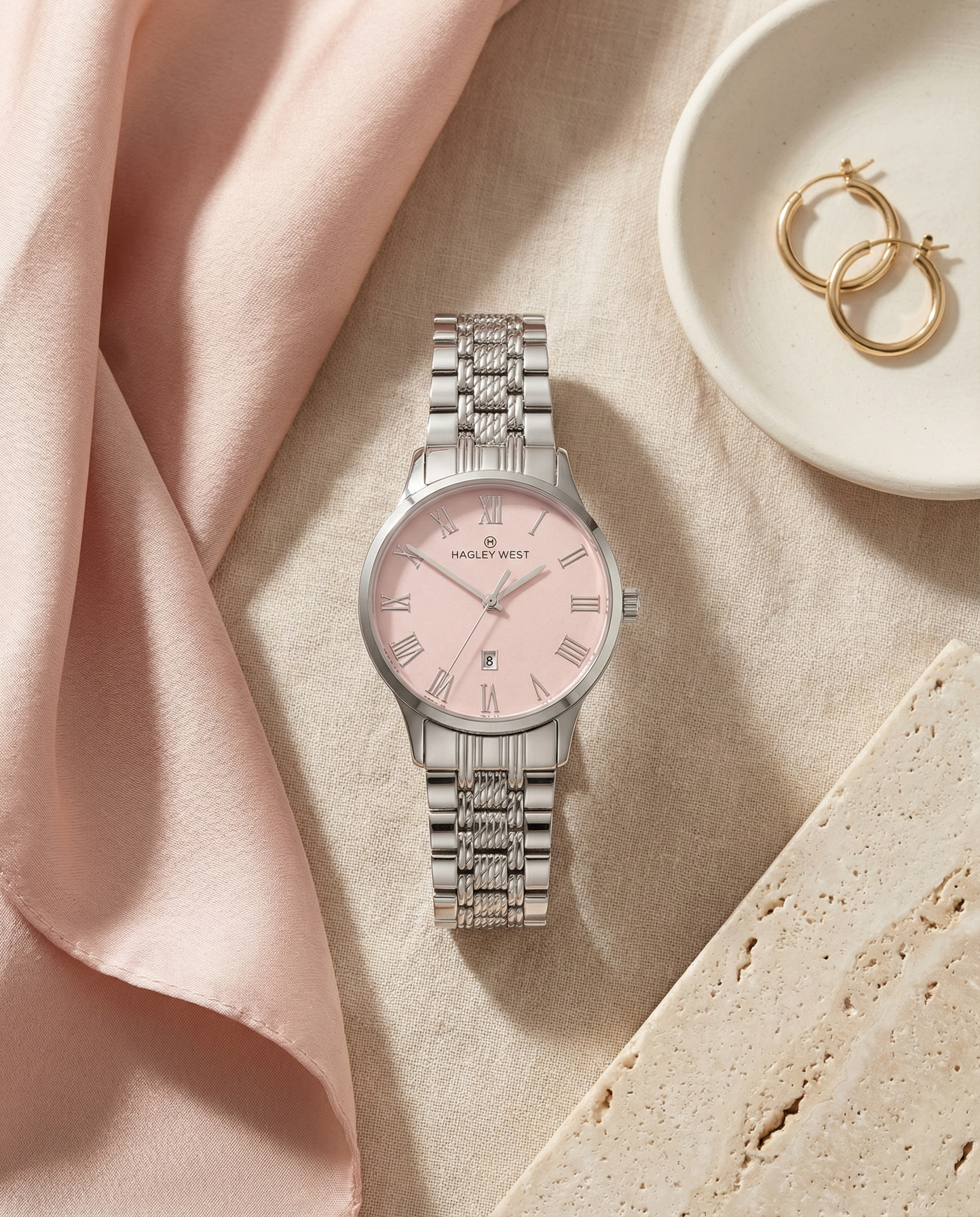 The Roman numeral indexes lend a sense of timeless refinement, blending classic watchmaking artistry with a modern feminine palette, making it perfect for both everyday wear and special occasions.