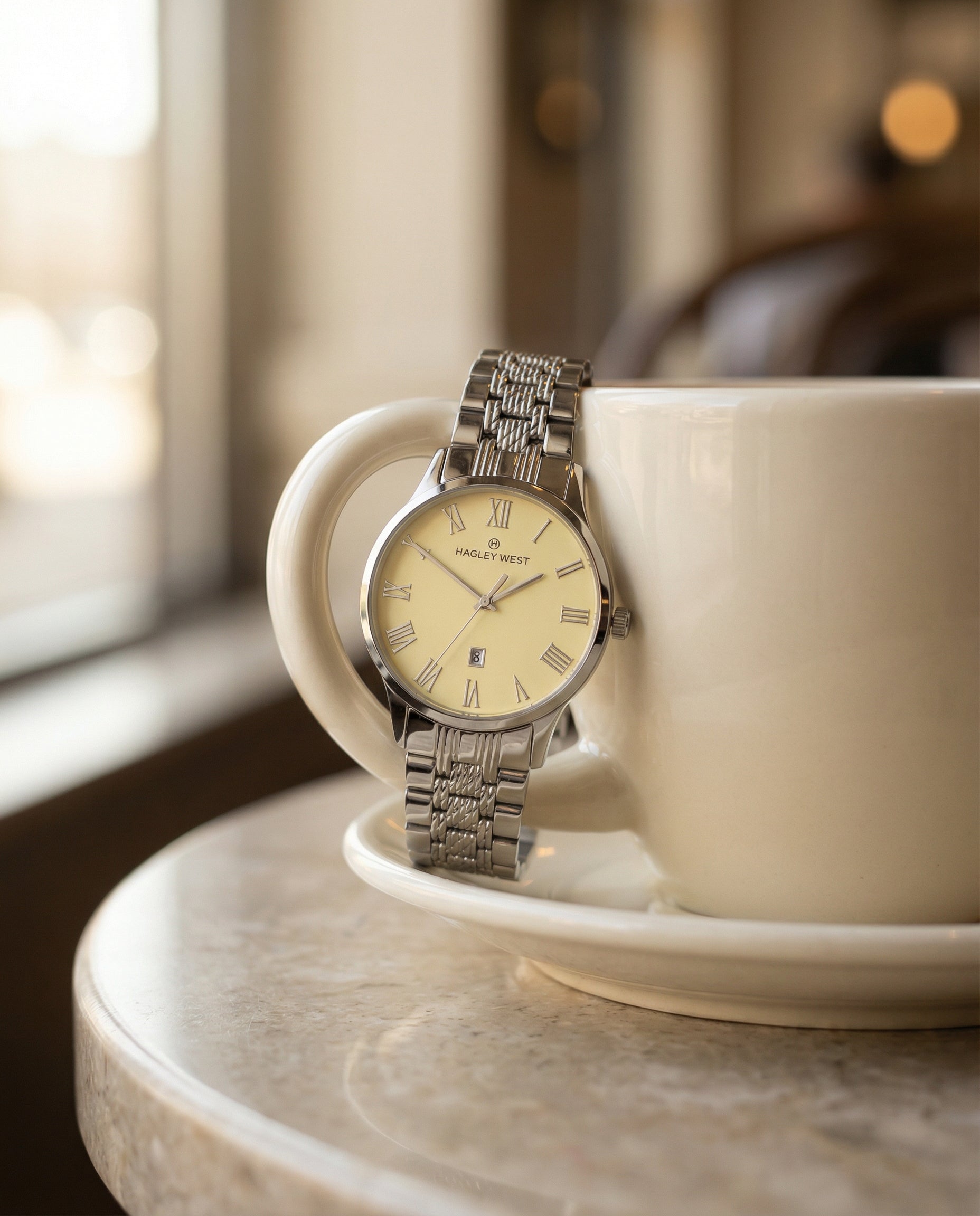 Hagley West offers two-year warranty covering manufacturer defects from the original purchase date from authorized dealers. This warranty excludes coverage for user damage, water exposure, normal wear, battery issues, glass damage, scratches, strap wear, and theft. Warranty claims require proof of purchase.